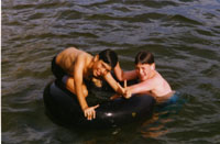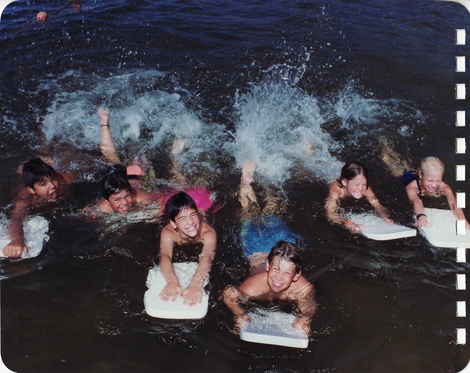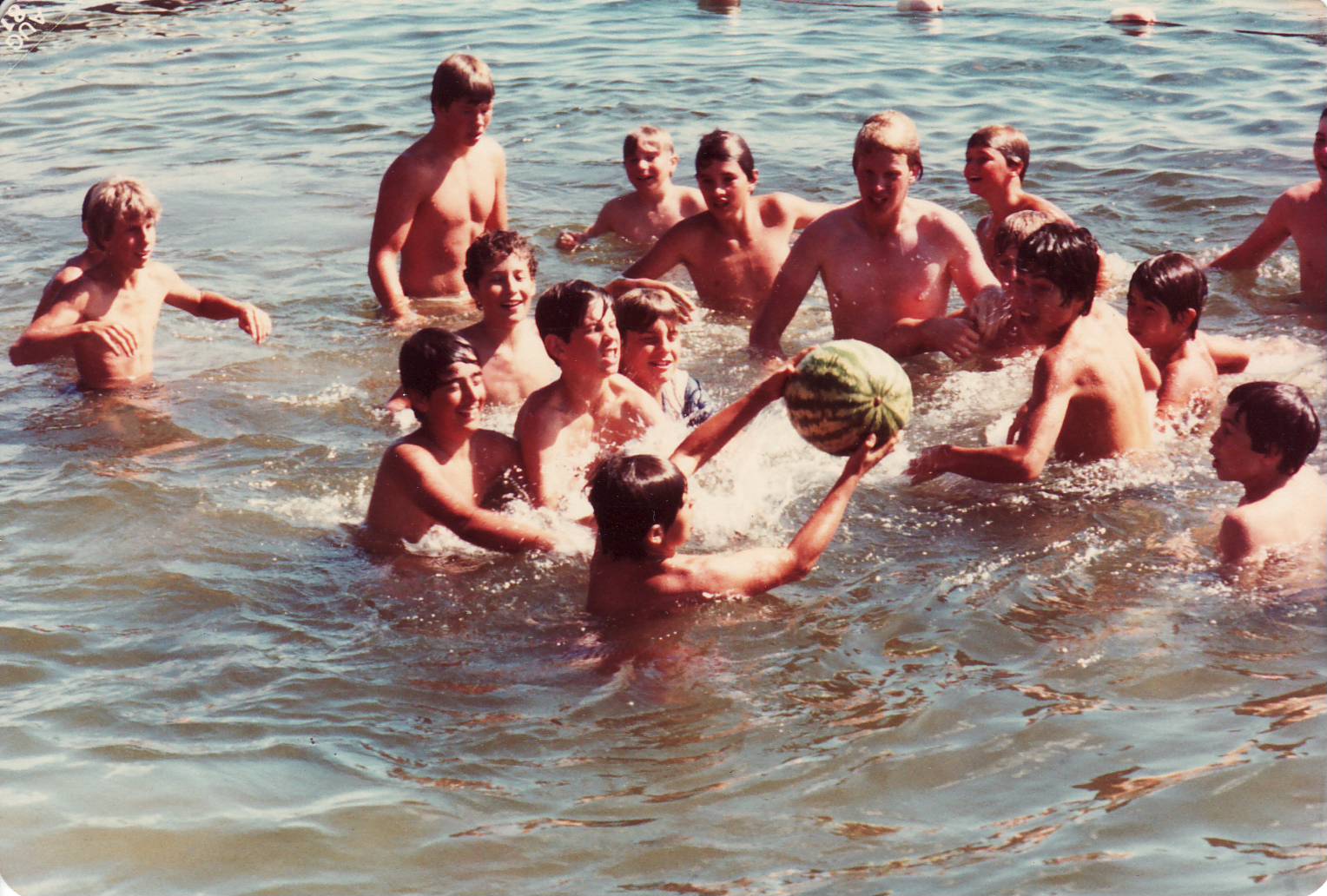 Finally reaching the 80s is very exciting! As you can see we have now entered the realm of color pictures! These pictures are special because of how blue and beautiful the lake looks, a side effect of the camera used at the time. It’s not hard to imagine how special it would feel to be a camper during this time. We have our first pictures of the campers playing “Grease Watermelon”, a hilarious game with the aim of chasing a greased up watermelon around in the water and something kids still love to do today!