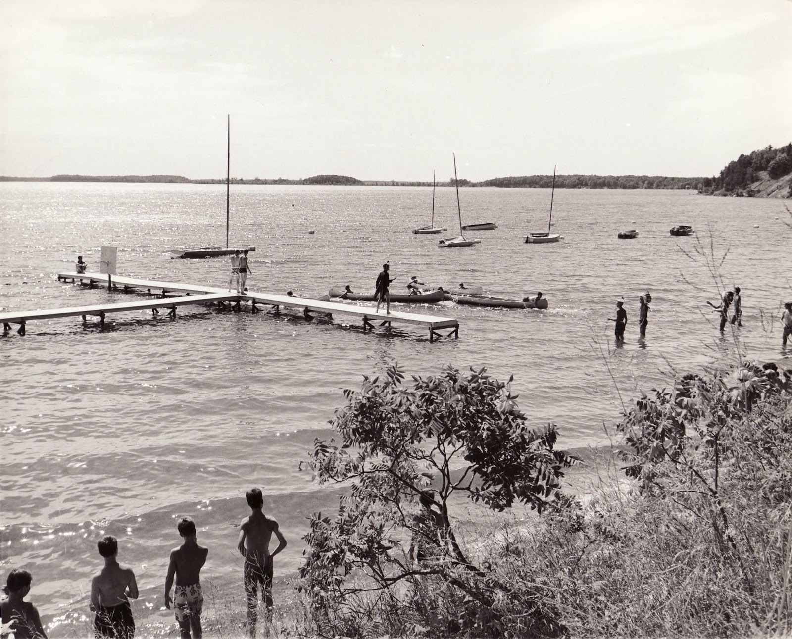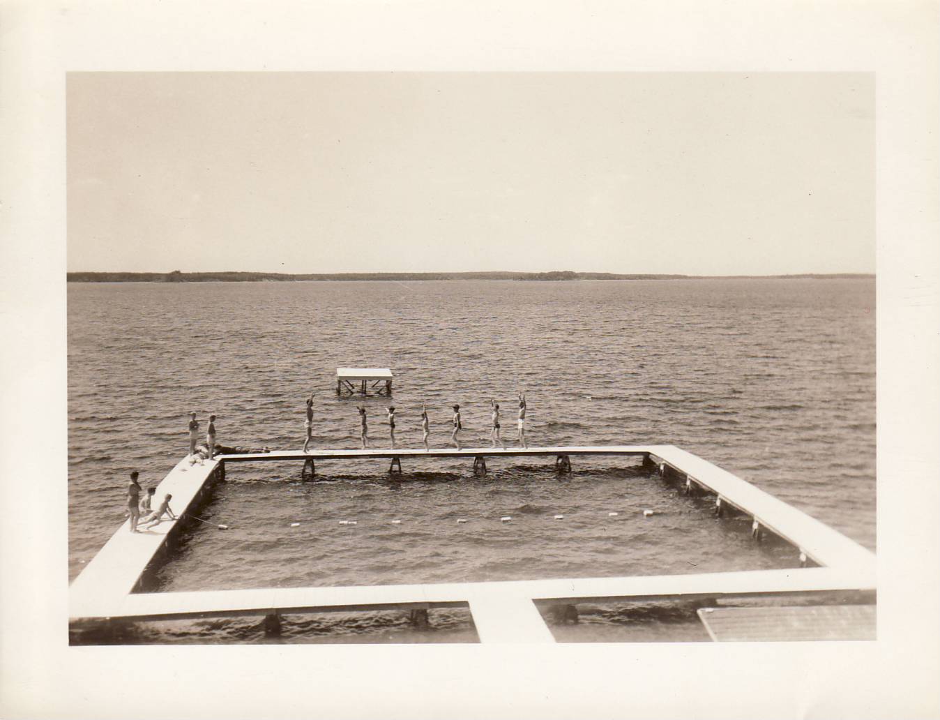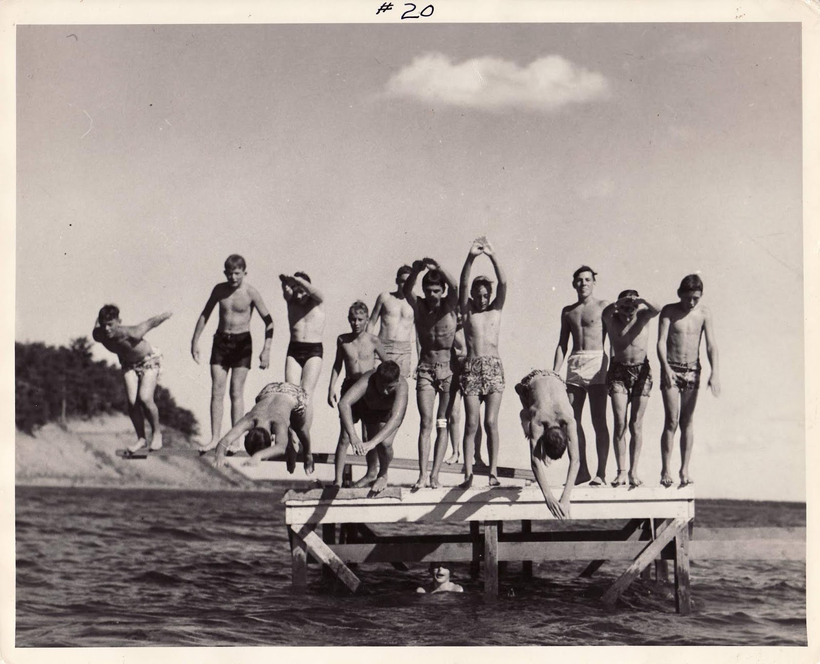 The camp was established just a few years prior to 1924. And from the pictures, we can see the boys (it was started as an all-boys camp) enjoying Whitefish, with much less dock than we are normally used to. We can see in the distance a very old version of the diving tower.