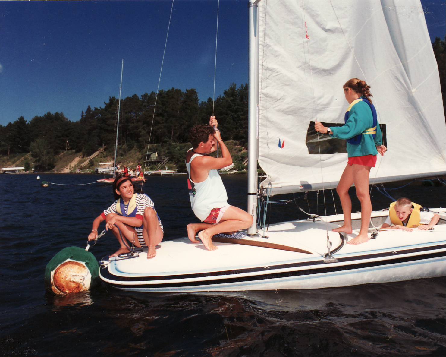 Things start to look more familiar as we enter the 80s. We can see aluminum safety boats that kids can be seen riding in. Sailing and Canoeing are still just as popular. Skiing gets a slight makeover with the purchase of a new ski boat that replaces the slowest of the two already at Camp Foley.
