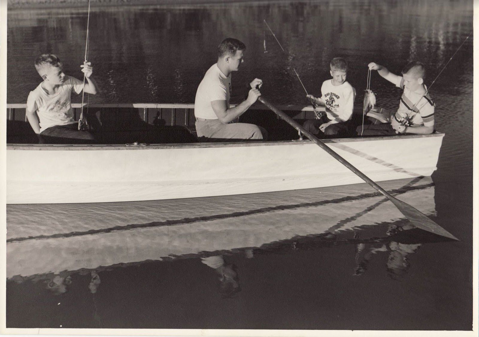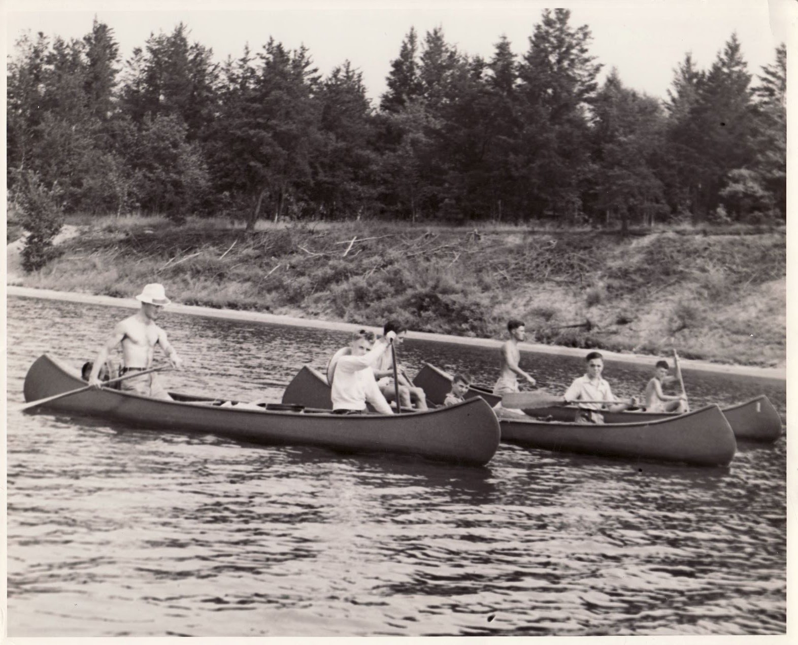As we transition into the 40s at Camp Foley a few changes in the boats happen. Camp still has the canoes and this is still a very popular activity. We see the first sailboats in camp in 1946. In 1949 we see the purchase of a brand new boat with a round bottom. It was called a Motorcraft but the campers would also many times use paddles to navigate the boat through more shallow water as well. It’s the 50s when major changes start to take place!