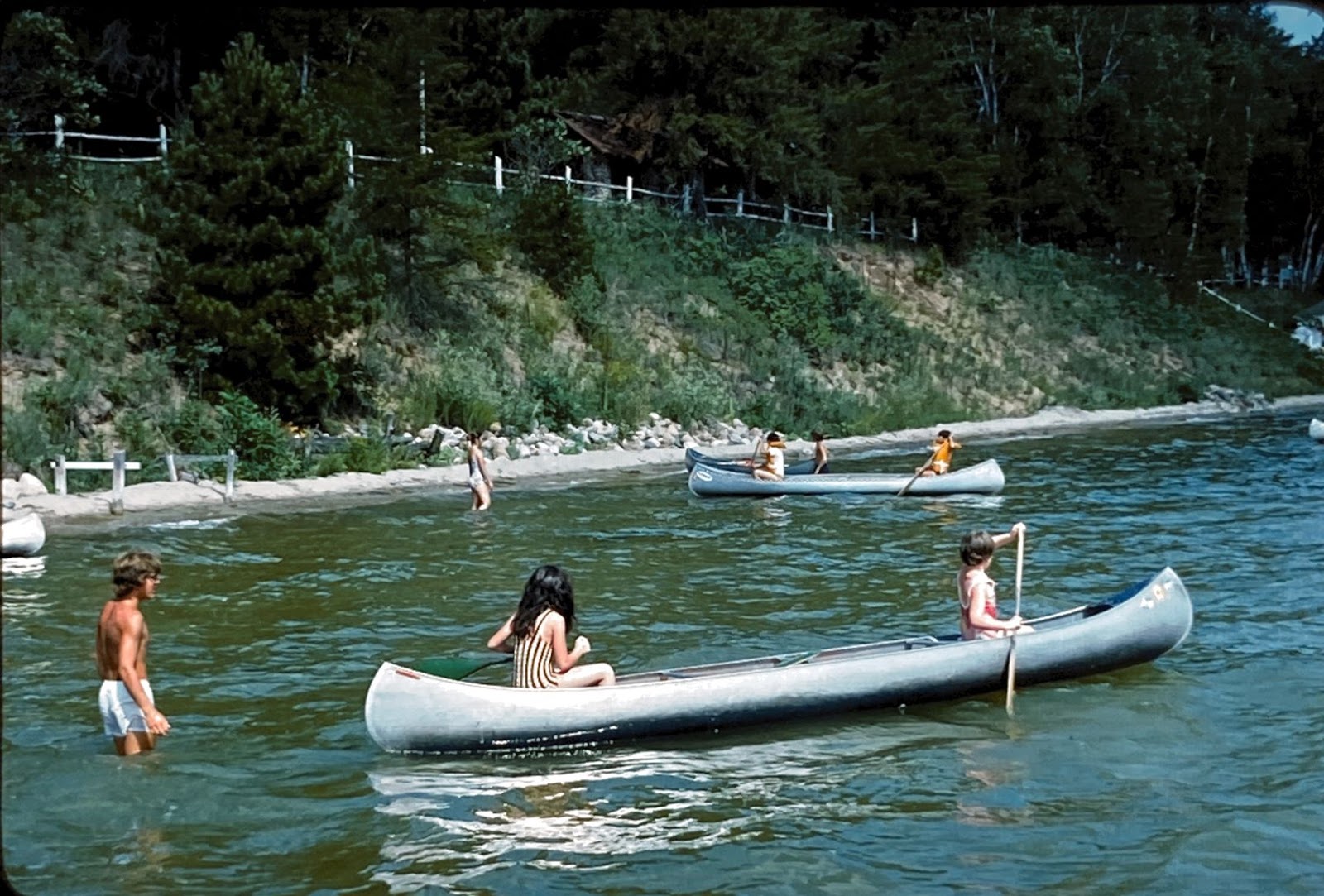 The 70s bring lots of exciting things, but as I always say, the most exciting thing is girl campers! Girls can now be seen on all the different watercraft around camp. In 1971, camp buys a new Glastron tri-hull Sportster ski boat with an 85 horsepower Evinrude motor. This is the fastest boat at camp so far. Interesting to note that in 1972 the Minnesota Life Jacket Law goes into effect, this law requires one U.S. Coast Guard approved, properly sized, and easily accessible life jacket for each person on the boat. All children under ten are required to wear an approved life jacket at all times while in a boat. Camp starts asking campers to bring their own life jacket to camp with them, and Camp sells life jackets in the canteen for $6 apiece.