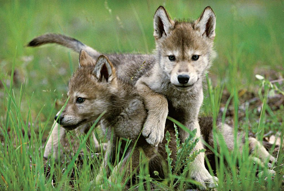 When wolf pups are first born, they’re completely blind and deaf and have little to no sense of smell. Baby wolves grow rapidly and gain between 2.6 and 3.3 pounds per week for the first 14 weeks of their lives. When they reach between 11 and 15 days old, their eyes will open and they’ll begin to see. At first, wolf pups will only consume their mother’s milk, and on average will feed four or five times a day. They gain plenty of nutrition to help them grow during this period. By the time they reach roughly 2 weeks old, they have their first milk teeth and can start to “wolf” down small pieces of meat.